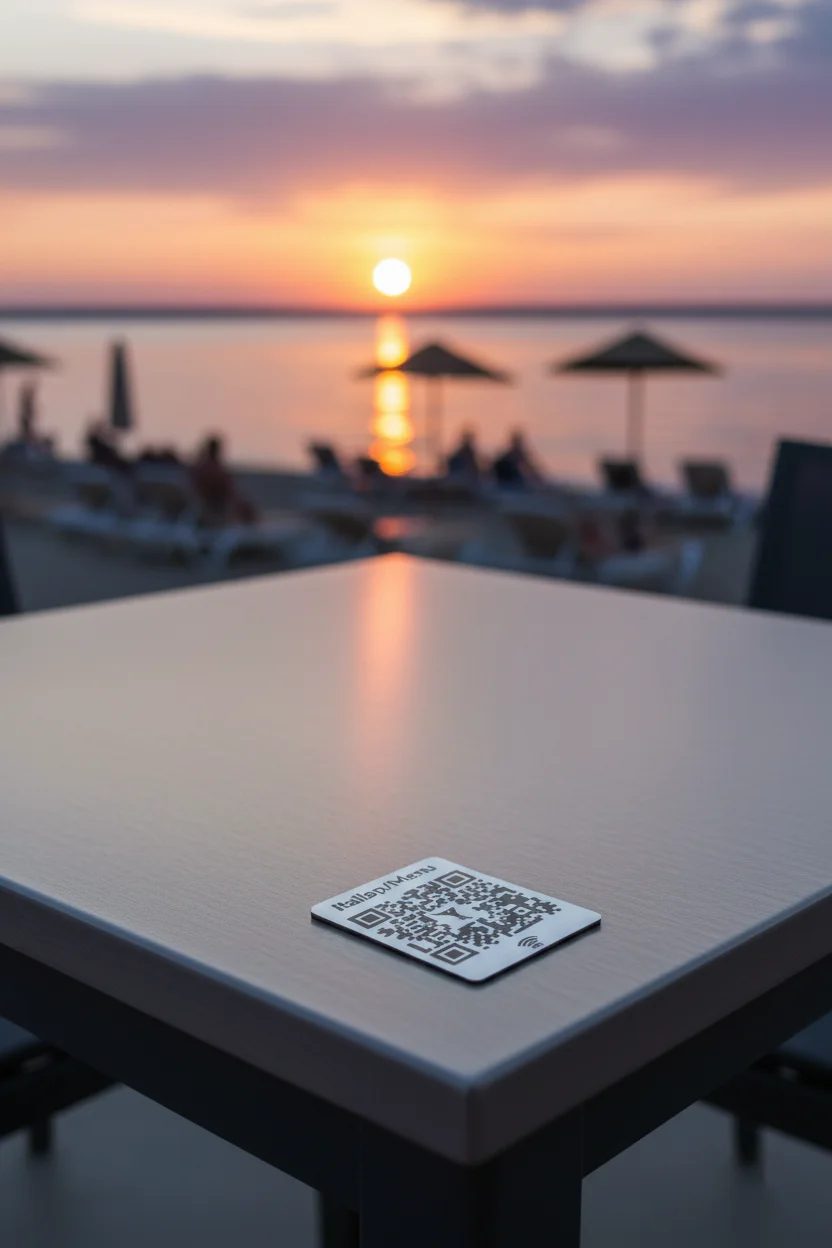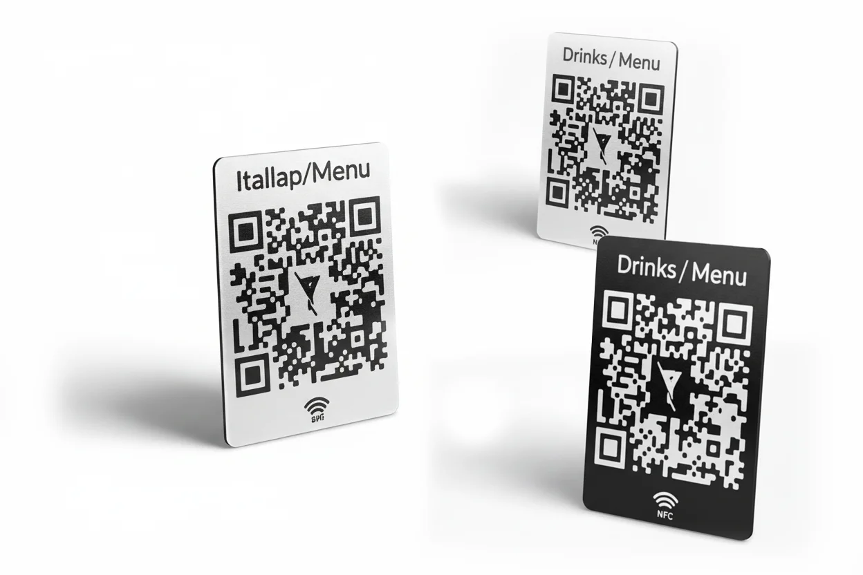 A rendszerhez tartozó QR-kódok nemcsak digitálisan, hanem fizikai formában is elkészíthetők, kölünböző színben és anyaggal. Igény esetén tartós, fémlapra gravírozott QR-kódokat biztosítunk, amelyek időjárás- és tisztításálló, nagy teherbírású ragasztóval rögzíthetők az asztalokra. Ezek évekig megőrzik minőségüket, így hosszú távon, megbízhatóan szolgálják a vendégeket és az üzemeltetőt is.